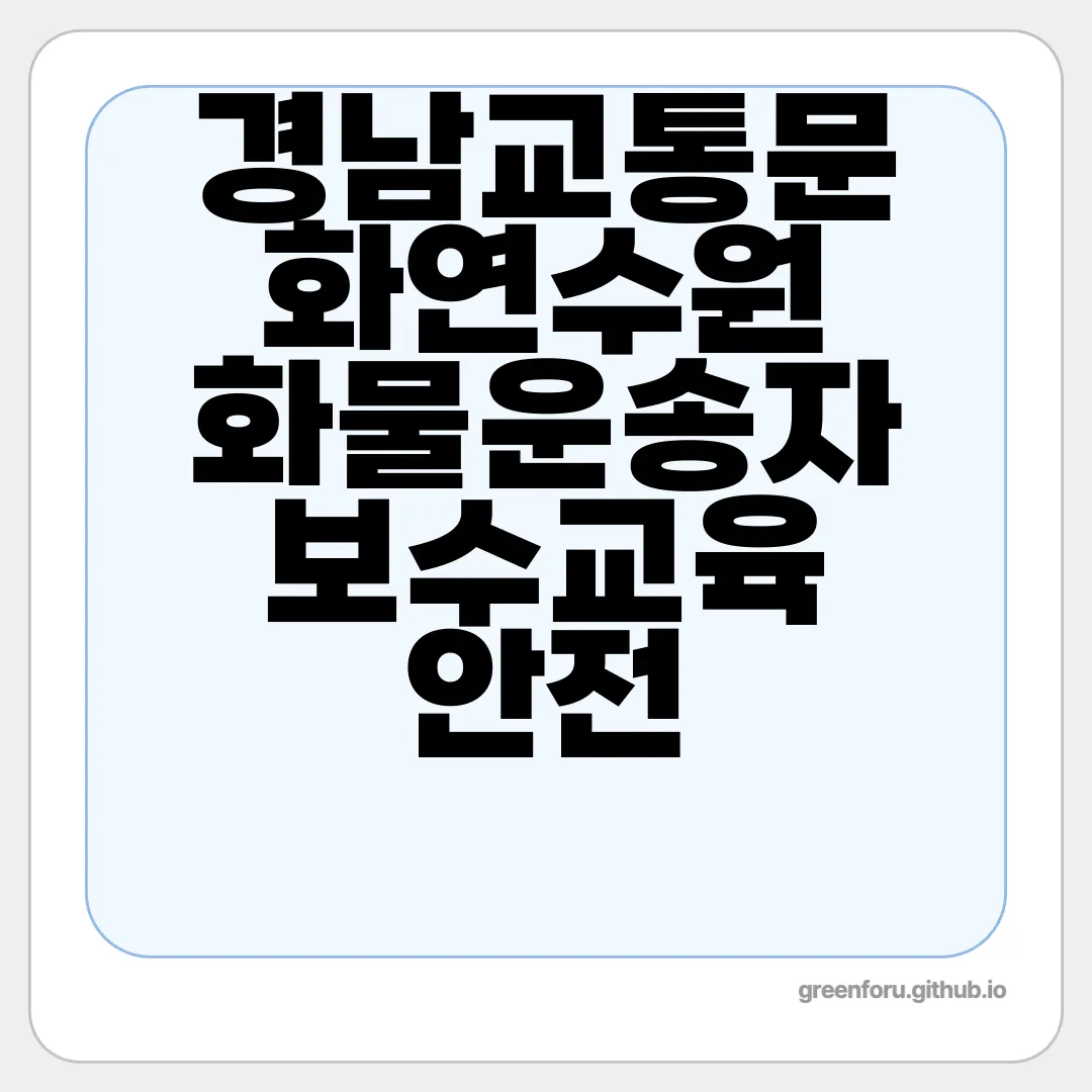 화물운송자 보수교육은 경남교통연수원의 홈페이지에서 신청할 수 있습니다. 현직 종사자라면 필수적으로 이수를 해야 하며, 현장접수는 불가하다는 점을 유의해야 합니다. 사전 예약제로 진행되므로, 교육 일정에 맞춰 미리 신청하는 것이 중요합니다. 그 외에도 신분증과 관련 서류를 준비하여 수업에 참석해야 하므로, 교육을 받기 전 모든 준비 사항을 체크해야 합니다.