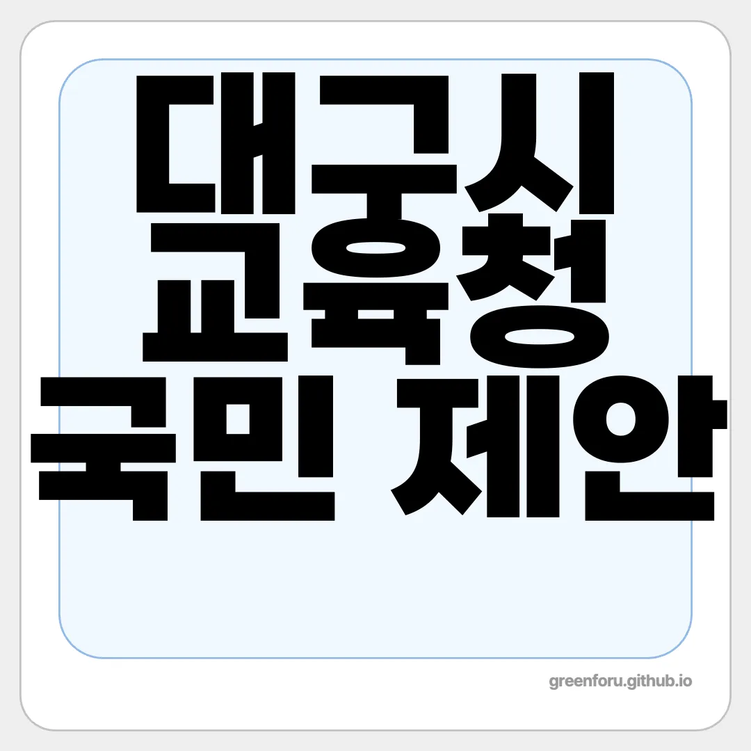 국민제안을 제출하려면 대구광역시 교육청의 국민신문고를 통해 간단한 신청서 작성과 본인인증을 통해 제안할 수 있습니다. 국민신문고 홈페이지를 방문하여 절차를 따르면 제안을 할 수 있습니다.